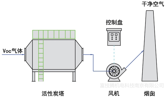 活性炭塔活性炭吸附法系利用高性能活性碳吸附劑(adsorbent)固體本身的表面作用力,將VOC分子之吸附質(zhì)(adsorbate)吸引附著在吸附劑表面,以達(dá)到去除VOC物質(zhì)之目的。活性碳吸附法在低濃度VCO條件下,可以理想地去除廢氣中揮發(fā)性有機(jī)物,同時(shí)有較佳的經(jīng)濟(jì)效益。故在空氣污染物控制方面,特別適用處理低濃度大風(fēng)量VOC之廢氣,例如電子原件生產(chǎn)、電池生產(chǎn)、酸洗作業(yè)、實(shí)驗(yàn)室排風(fēng)、冶金、化工、醫(yī)藥、涂裝、輕工、橡膠、船舶、汽車、石油、噴漆、釀造及家具生產(chǎn)等行業(yè)廢氣凈化。流程示意圖